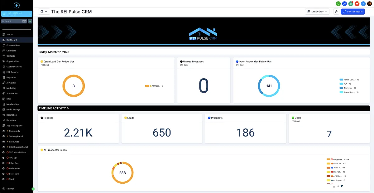 The REI Pulse CRM features were custom built by a wholesaler with decades in the business who runs deals through it daily. Everything works together natively, no Zapier needed, and it comes with the training, scripts, and mentorship to actually use it.